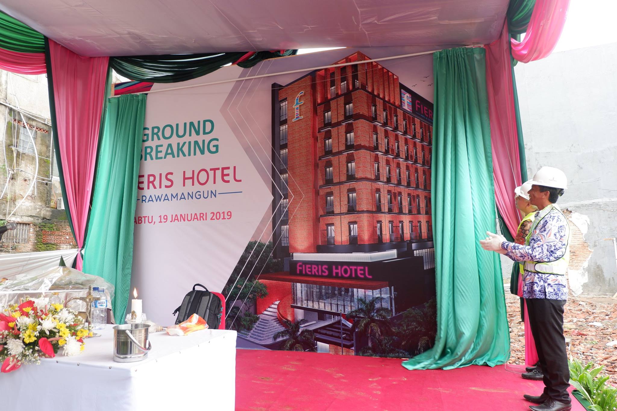 Pembukaan Tirai dalam acara Ground Breaking Fieris Hotel yang dilakukan oleh Owner