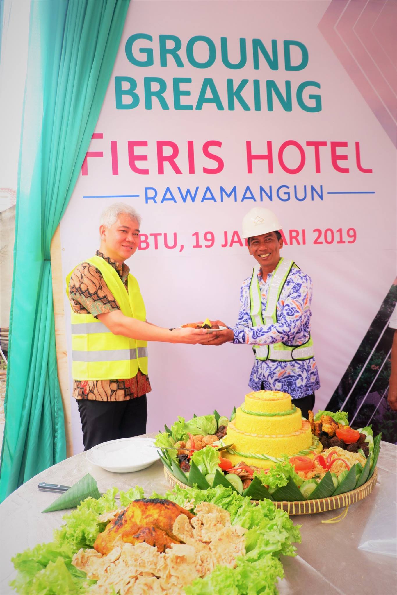 Penyerahan Tumpeng dari Bapak Jon Fieris selaku Owner kepada Bapak Sotya Aribowo sebagai Direksi Fieris hotel sebagai tanda awal di mulainya tanggung jawab operasional yang di emban oleh Management Fieris Hotel.