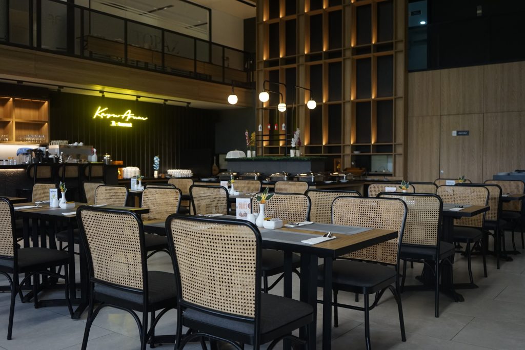 With indoor and outdoor seating, Kayu Arum is a stylish restaurant that is open all day.